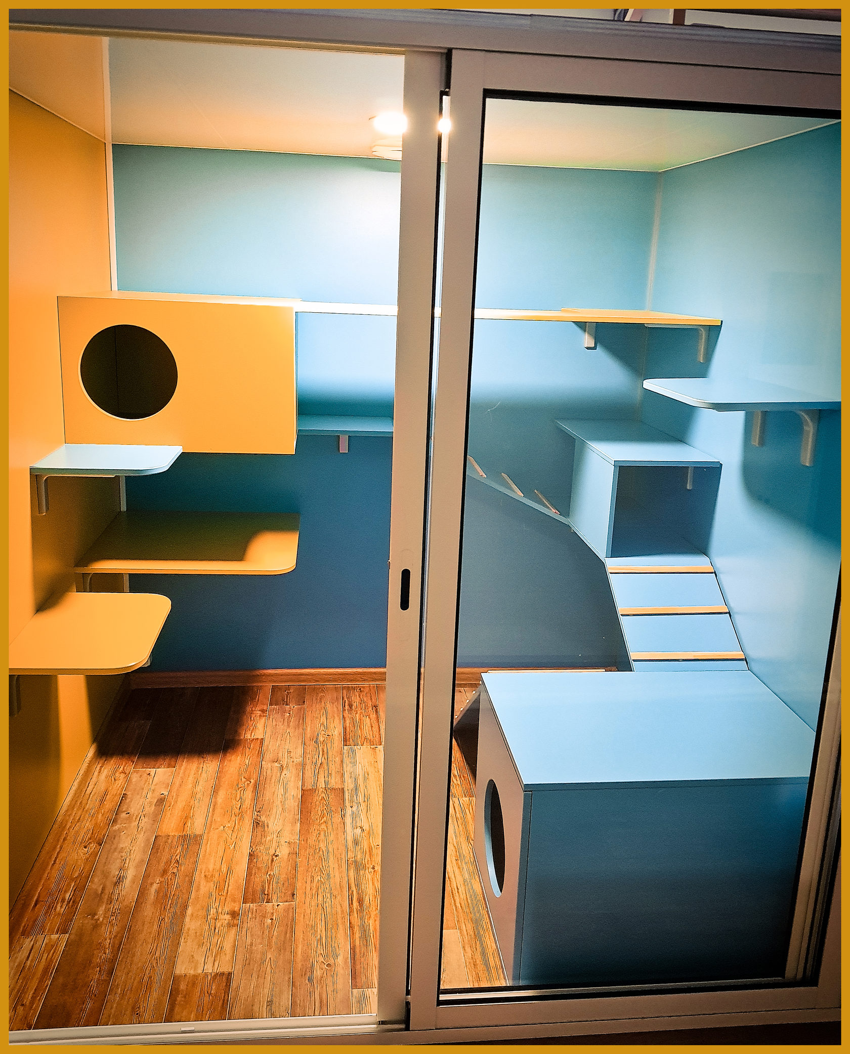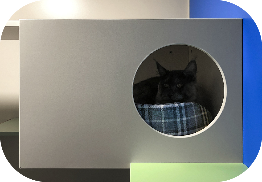 У нас нет мягкой обивки и общих мягких вещей. После каждого посетителя делаем кварцевание и отмываем номер безопасным, профессиональным средством для животных.